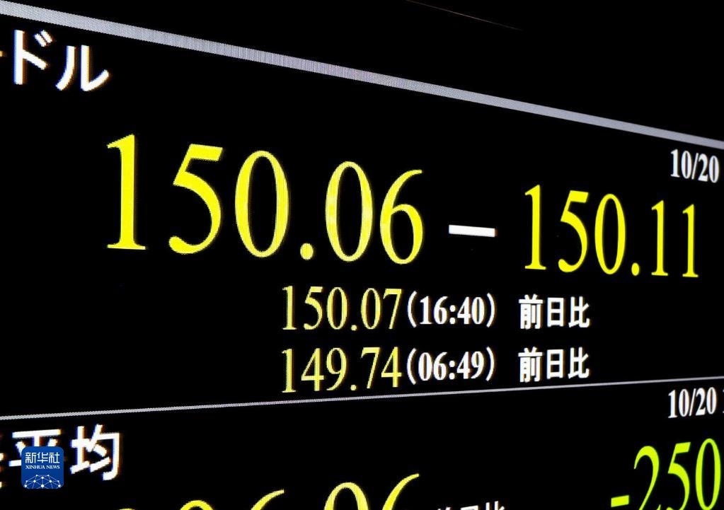 這是10月20日在日本東京拍攝的日元對美元匯率信息顯示屏。新華社記者 張笑宇 攝