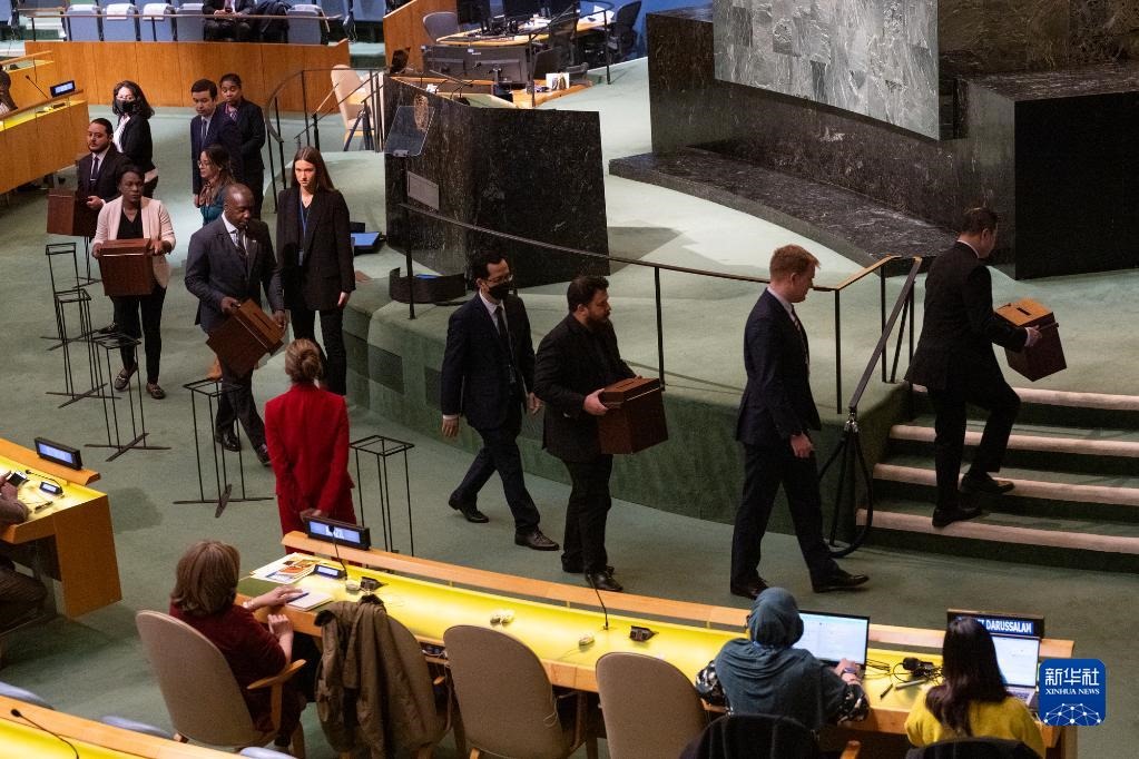 這是11月15日在紐約聯(lián)合國總部拍攝的聯(lián)合國上訴法庭和爭議法庭法官選舉現(xiàn)場。新華社發(fā)(聯(lián)合國供圖/洛伊斯·費利普攝)