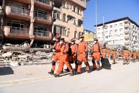 2月14日,中國救援隊(duì)與中國香港特區(qū)救援隊(duì)聯(lián)合編組在土耳其哈塔伊省安塔基亞市開展救援工作。