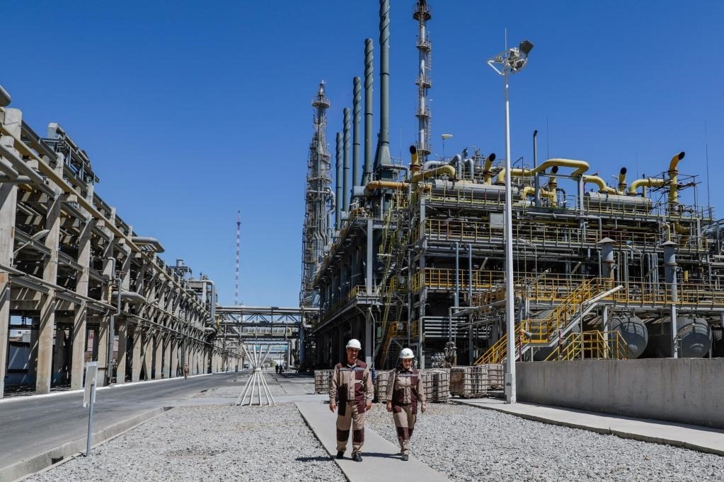 這是去年8月18日在烏茲別克斯坦納沃伊市拍攝的納沃伊氮肥股份公司聚氯乙烯工廠(chǎng)。