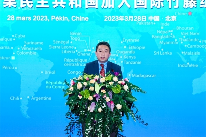國際竹藤組織理事會(huì)主席、喀麥隆林業(yè)和野生動(dòng)物部部長恩東戈·朱爾·多雷,國際竹藤組織董事會(huì)聯(lián)合主席江澤慧,中國外交部國際經(jīng)濟(jì)司參贊張雷,中國國家林業(yè)和草原局副局長譚光明,乍得共和國駐華使館代辦馬魯米,剛果民主共和國農(nóng)業(yè)部部長姆津加·比利漢澤·德西雷出席并致辭。