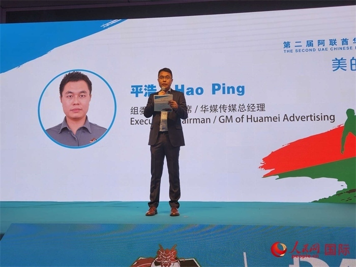 阿聯(lián)酋第二屆華人足球聯(lián)賽賽事組委會執(zhí)行主席平浩在頒獎典禮暨答謝晚宴上致辭。人民網(wǎng)記者 管克江攝