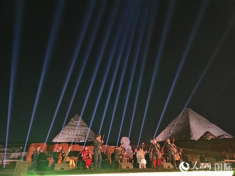 中埃兩國同為世界文明古國,人文領(lǐng)域合作空間大、潛力足。夜幕下的吉薩三大金字塔在燈光映襯下巍峨聳立,現(xiàn)場(chǎng)橫幅展示出“讓中埃友誼如尼羅河水奔涌向前”字樣,兩大古老文明此刻在金字塔上空相遇。音樂會(huì)的成功舉辦將成為中埃兩國文化合作新起點(diǎn)。