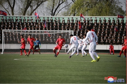 報(bào)道稱,首先進(jìn)行了朝鮮內(nèi)閣和國(guó)防省職員的足球比賽,兩隊(duì)攻防激烈,最終以1:1戰(zhàn)平,隨后進(jìn)入了點(diǎn)球大戰(zhàn),國(guó)防省隊(duì)以5:3力克內(nèi)閣隊(duì)。
