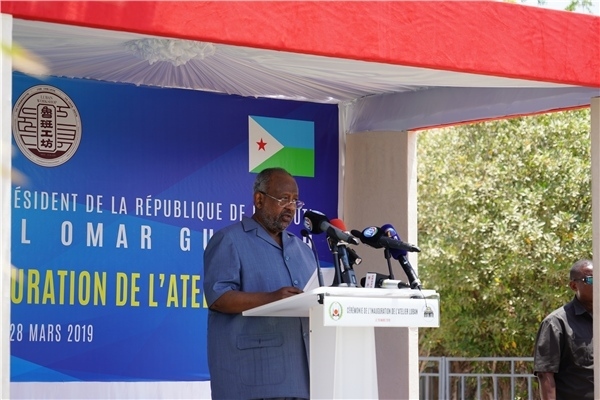 2019年3月28日,吉布提總統(tǒng)蓋萊在魯班工坊啟動儀式上致辭。天津鐵道職業(yè)技術(shù)學院供圖