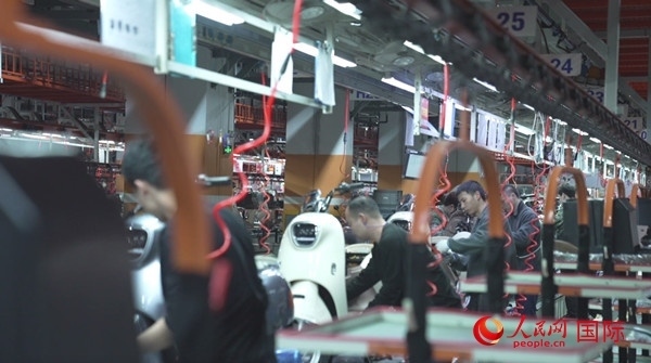 雅迪生產車間。人民網(wǎng) 彭昱凱 攝