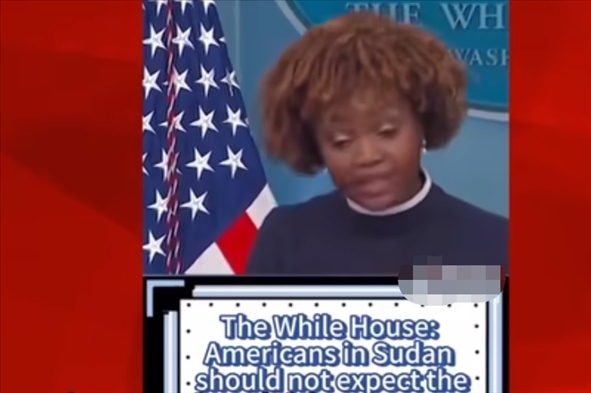 為證明自己的觀點(diǎn),安柏然在視頻中展示了幾個(gè)視頻片段。其中一個(gè)片段顯示,一名美媒主持人報(bào)道稱,美軍在夜間出動(dòng)直升機(jī)將大約100名美國(guó)外交官及其家屬?gòu)奶K丹撤出。還有一段視頻顯示,白宮新聞秘書卡里娜·讓-皮埃爾近日在記者會(huì)上稱,美國(guó)駐蘇丹使館4月16日曾發(fā)布安全警告稱,由于喀土穆安全局勢(shì)存在不確定性且機(jī)場(chǎng)已關(guān)閉,美國(guó)公民此時(shí)不應(yīng)期待美國(guó)政府協(xié)調(diào)撤僑?!爱?dāng)務(wù)之急是,在蘇丹的美國(guó)公民要自行安排,在困難情況下確保自身安全。我們建議美國(guó)公民就地避難……”她稱。