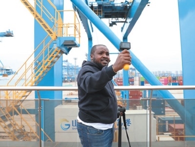 4月23日,非洲青年代表用鏡頭記錄山東青島港的繁忙景象。 本報記者 陳尚文攝