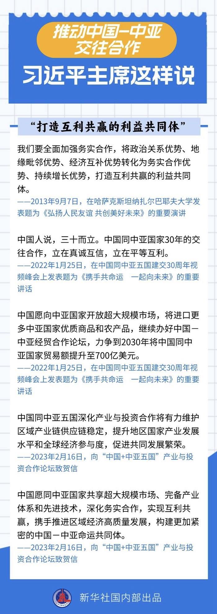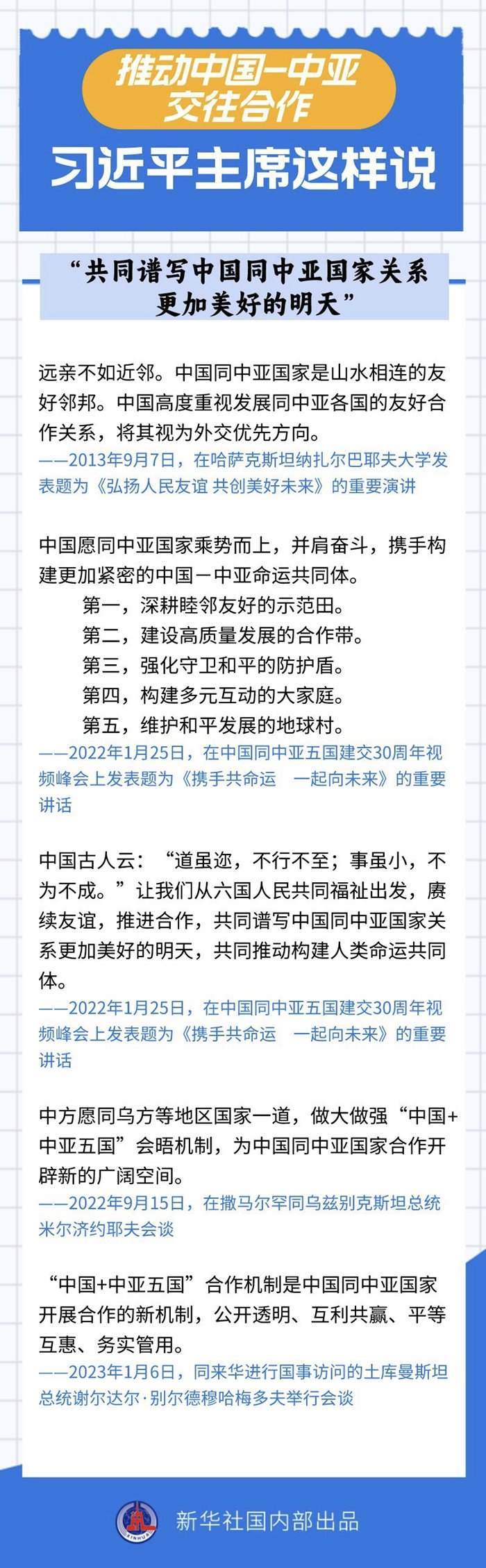過去十年間,習(xí)近平主席同中亞五國(guó)領(lǐng)導(dǎo)人保持密切互動(dòng),引領(lǐng)中國(guó)同中亞國(guó)家政治互信不斷深化,務(wù)實(shí)合作提質(zhì)升級(jí),國(guó)際協(xié)作走深走實(shí)。關(guān)于中國(guó)-中亞交往合作,習(xí)近平主席作出過哪些重要論述?一起來(lái)看——