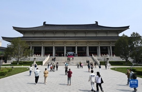 5月9日,游客在西安碑林博物館內(nèi)參觀游覽。