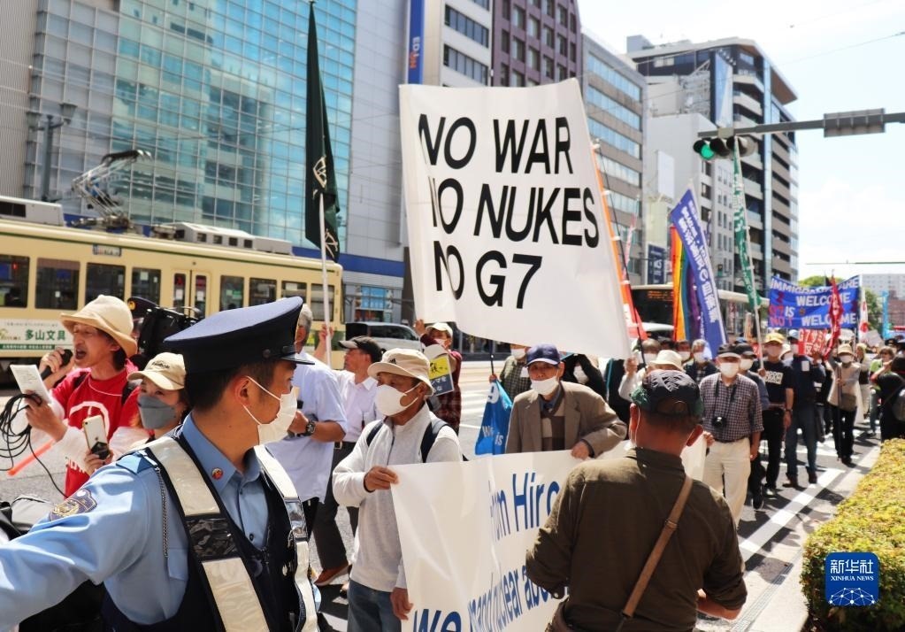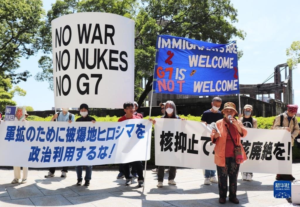 “不做戰(zhàn)爭(zhēng)幫兇”“不要G7”……14日,200多名日本民眾舉著各式標(biāo)語(yǔ),在廣島和平紀(jì)念公園原子彈轟炸遺址舉行集會(huì),強(qiáng)烈抗議七國(guó)集團(tuán)(G7)峰會(huì)將在廣島召開。