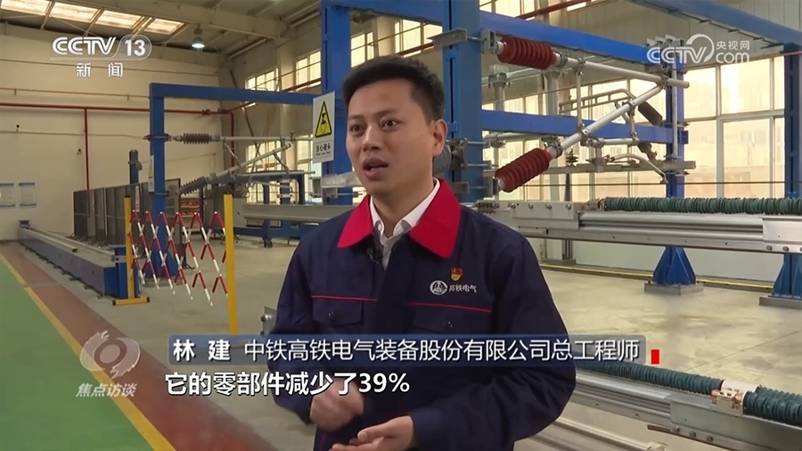 中鐵高鐵電氣裝備股份有限公司總工程師林建:“簡(jiǎn)統(tǒng)化腕臂裝置相對(duì)于傳統(tǒng)的鋁合金三角腕臂裝置來(lái)說,它的零部件減少了39%,在運(yùn)營(yíng)過程中,在同等滿足系統(tǒng)使用要求情況下,零部件越少,故障率越小,安全可靠性就會(huì)更高?!?/p>