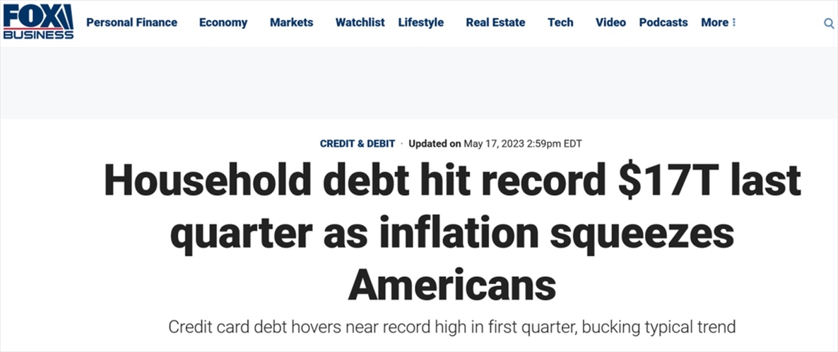 “通脹榨干了美國(guó)人,”對(duì)此,美國(guó)??怂剐侣劸W(wǎng)報(bào)道稱,“自2023年伊始,美國(guó)人的債臺(tái)更加高筑,有越來(lái)越多的美國(guó)家庭拖欠貸款?!?/p>