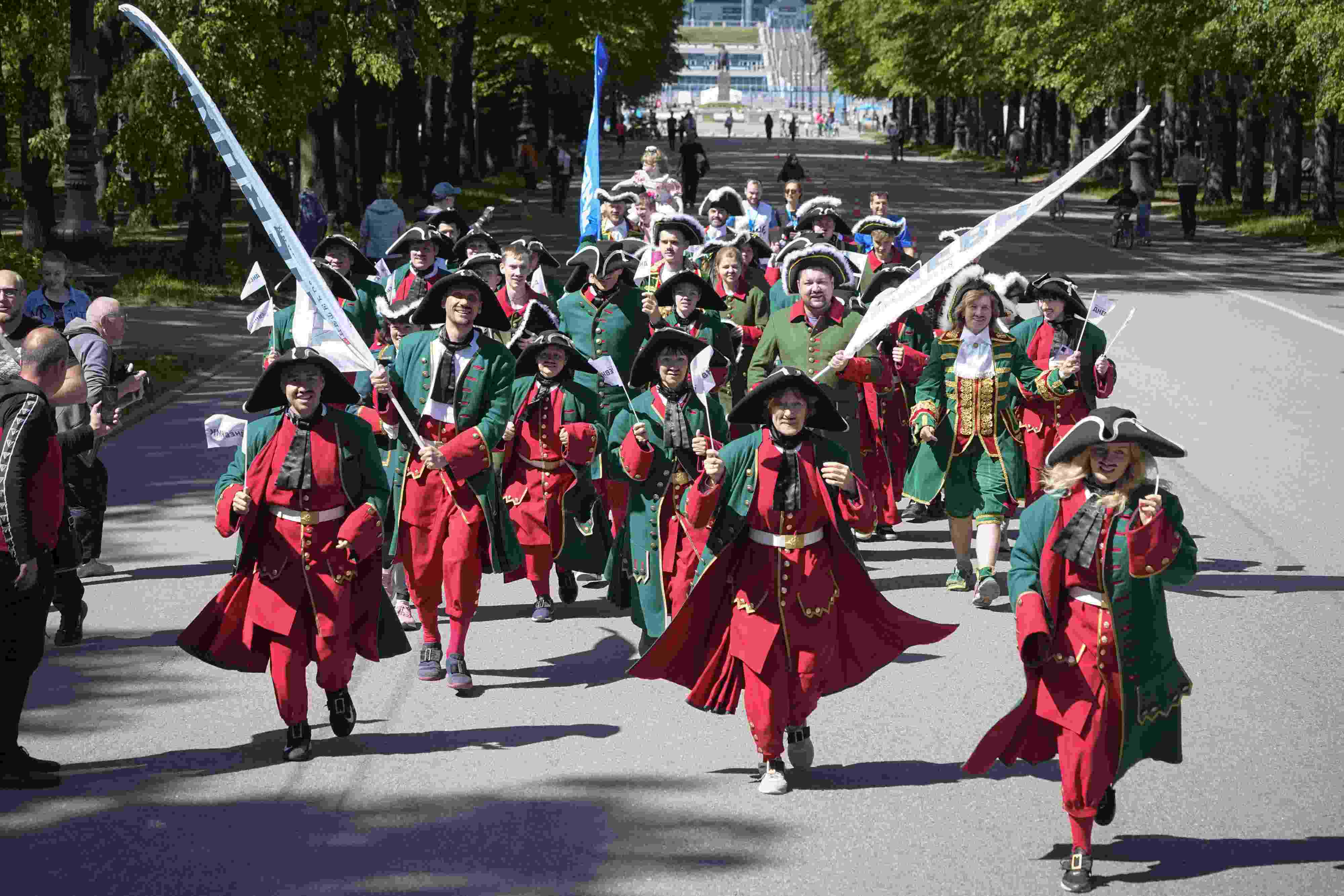 當(dāng)?shù)貢r(shí)間2023年5月28日,俄羅斯圣彼得堡,人們身著傳統(tǒng)服飾慶祝圣彼得堡建城320周年。 視覺(jué)中國(guó)