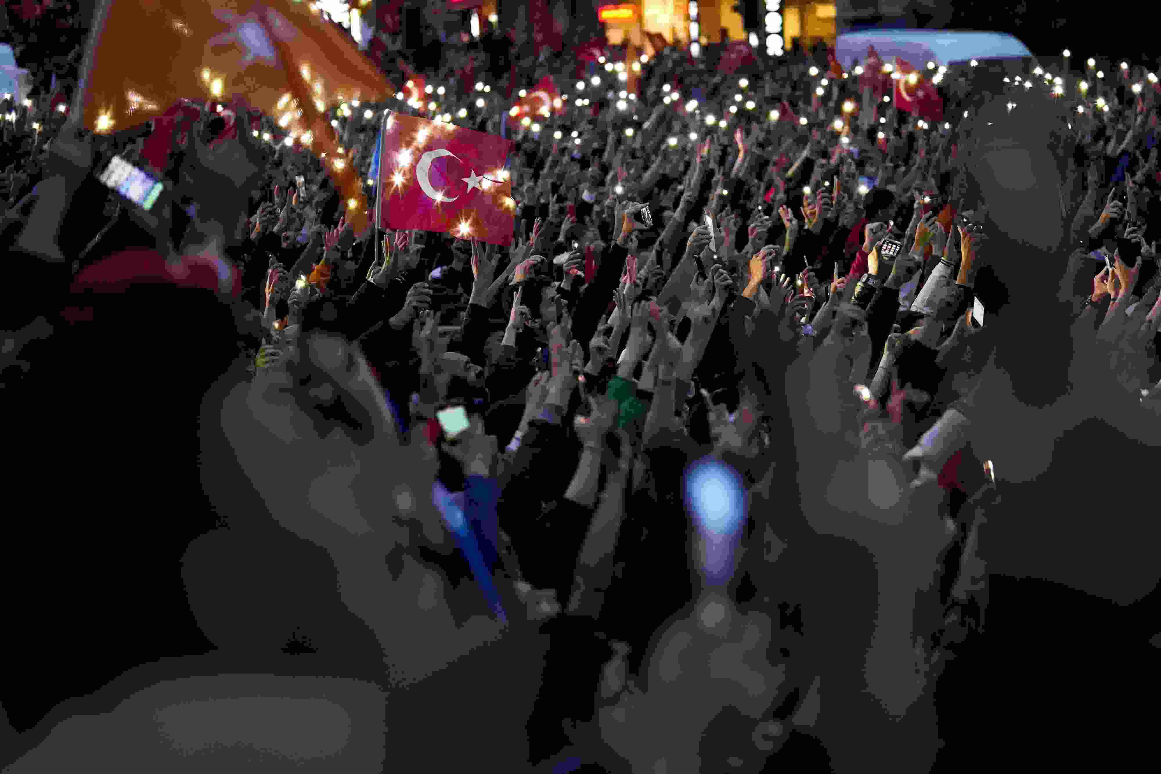 當?shù)貢r間2023年5月28日,土耳其伊斯坦布爾,埃爾多安的支持者慶祝其再次當選土耳其總統(tǒng)。 視覺中國