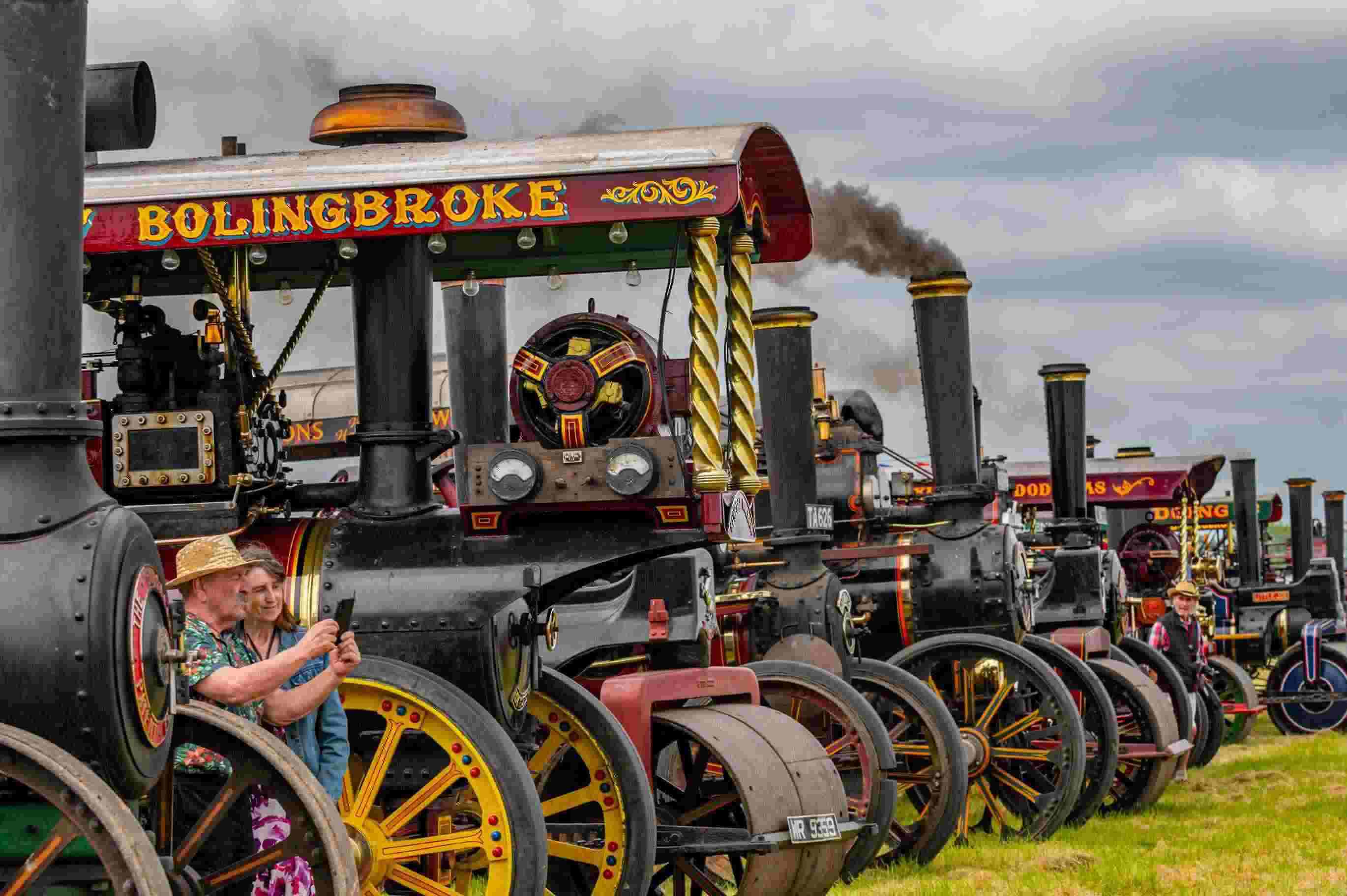 當(dāng)?shù)貢r(shí)間5月28日,英國(guó)林肯郡,卡靈頓蒸汽和復(fù)古博覽會(huì)上,眾多復(fù)古蒸汽動(dòng)力車輛參展。 視覺(jué)中國(guó)