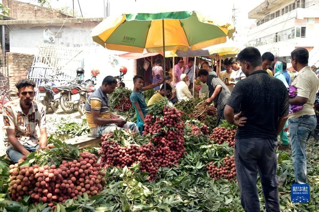 這是6月4日在孟加拉國迪納杰布爾市場中拍攝的待售的荔枝。新華社發(fā)