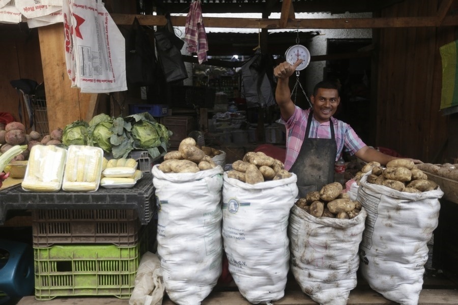 6月1日,一名商販在洪都拉斯首都特古西加爾巴街頭工作。新華社發(fā)(盧西奧·塔沃拉攝)