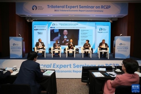 在當(dāng)日由中日韓合作秘書處主辦的中日韓《區(qū)域全面經(jīng)濟(jì)伙伴關(guān)系協(xié)定》(RCEP)專家研討會暨《2023中日韓經(jīng)濟(jì)報告》發(fā)布會上,與會專家重申了中日韓加強(qiáng)區(qū)域經(jīng)濟(jì)合作的重要性,強(qiáng)調(diào)為實(shí)現(xiàn)未來增長,應(yīng)同時在國家和地方層面加強(qiáng)合作。專家們表示,順暢的人員往來和政策交流將助力三國在RCEP框架內(nèi)更好開展區(qū)域經(jīng)濟(jì)合作。