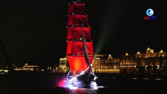 24日深夜,圣彼得堡為慶祝中學生畢業(yè)準備的年度大型活動“紅帆節(jié)”如期舉行。