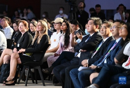 這是6月29日拍攝的第十四屆夏季達(dá)沃斯論壇閉幕全會現(xiàn)場。新華社記者 趙子碩 攝