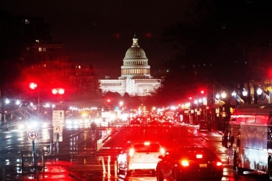 這是2022年12月22日在美國(guó)華盛頓拍攝的雨中的車輛和國(guó)會(huì)大廈。新華社記者 劉杰 攝