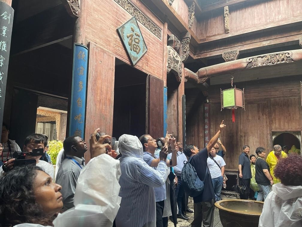 圖為駐華使節(jié)參觀世界文化遺產(chǎn)地宏村。新華社記者董雪 攝