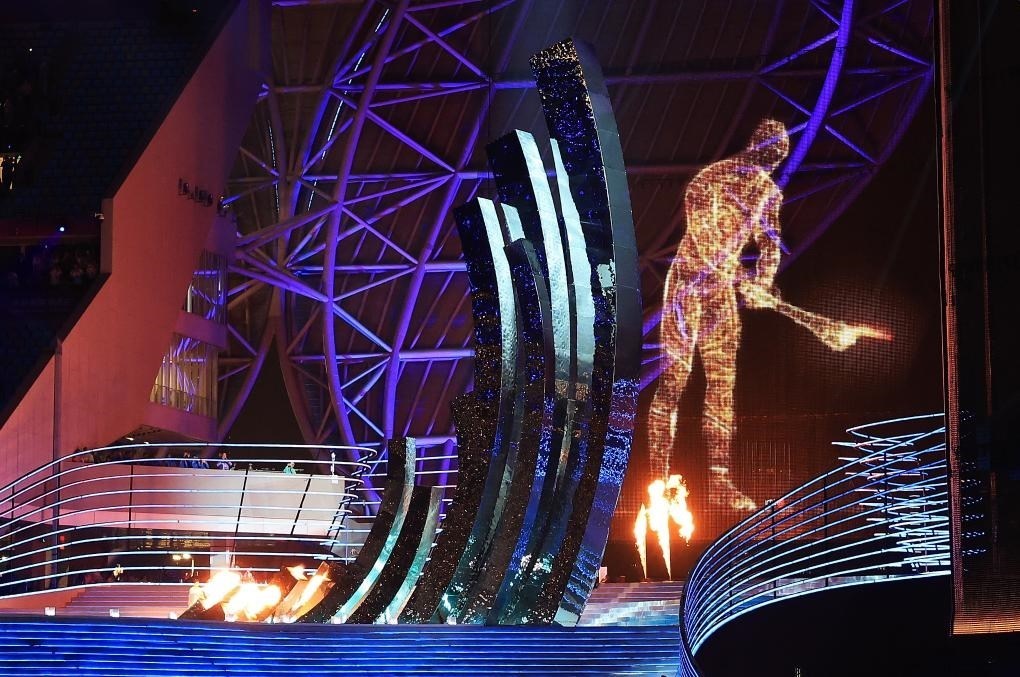 9月23日,數(shù)字火炬手在點(diǎn)燃主火炬。(新華社記者劉續(xù)攝)