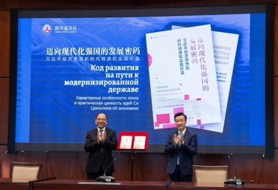 會(huì)議重點(diǎn)宣介和展示的新華社國家高端智庫報(bào)告《邁向現(xiàn)代化強(qiáng)國的發(fā)展密碼——習(xí)近平經(jīng)濟(jì)思想的時(shí)代特質(zhì)和實(shí)踐價(jià)值》引發(fā)與會(huì)各國嘉賓廣泛關(guān)注。該智庫報(bào)告是新華社研究習(xí)近平新時(shí)代中國特色社會(huì)主義思想的創(chuàng)新成果,從哲學(xué)維度、方略維度、戰(zhàn)術(shù)維度和全球視野,全面闡釋習(xí)近平經(jīng)濟(jì)思想的核心要義、精神實(shí)質(zhì)、豐富內(nèi)涵,以“美”“實(shí)”“效”“協(xié)”“共”五個(gè)關(guān)鍵字深入解讀習(xí)近平經(jīng)濟(jì)思想的鮮明特征,系統(tǒng)展現(xiàn)了其中所蘊(yùn)含的大國經(jīng)濟(jì)治理智慧。