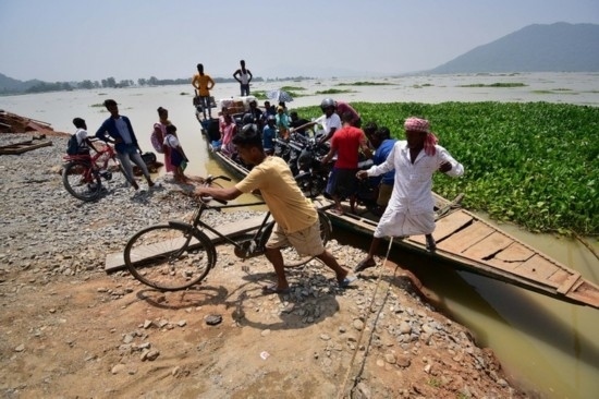 8月30日,人們在印度東北部阿薩姆邦一處洪災區(qū)域乘船出行。新華社發(fā)