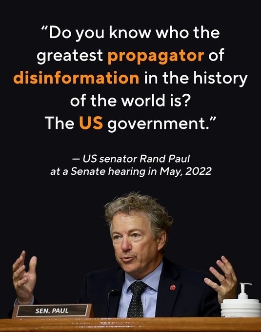 在2022年5月美國(guó)國(guó)會(huì)一場(chǎng)聽證會(huì)上,聯(lián)邦參議員蘭德·保羅自問自答并舉出一系列例證,其中包括2003年美國(guó)政府以“大規(guī)模殺傷性武器”為借口入侵伊拉克。