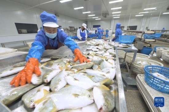 10月17日,位于中印尼“兩國(guó)雙園”的福建淼天匯食品有限公司員工在整理準(zhǔn)備出口到印尼的魚產(chǎn)品。