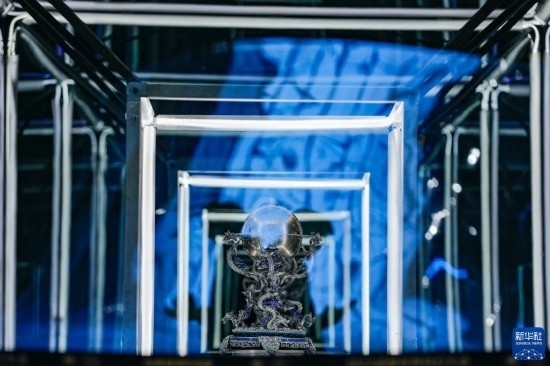 10月18日,在第81屆世界科幻大會主場館——成都科幻館內(nèi),兩名觀眾從藝術(shù)裝置作品《共生紀(jì)元》前走過。