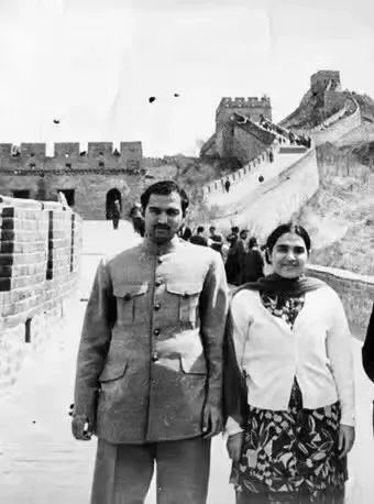 1972年, 穆沙希德(左)和姐姐一起參觀長(zhǎng)城。