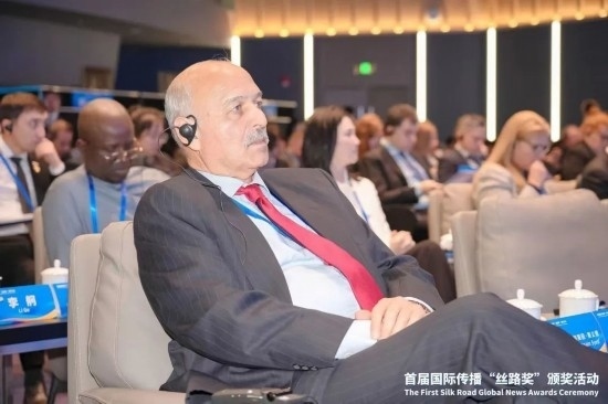 穆沙希德10月19日參加2023“一帶一路”媒體合作論壇并代表國(guó)際傳播“絲路獎(jiǎng)”獲獎(jiǎng)?wù)甙l(fā)言。