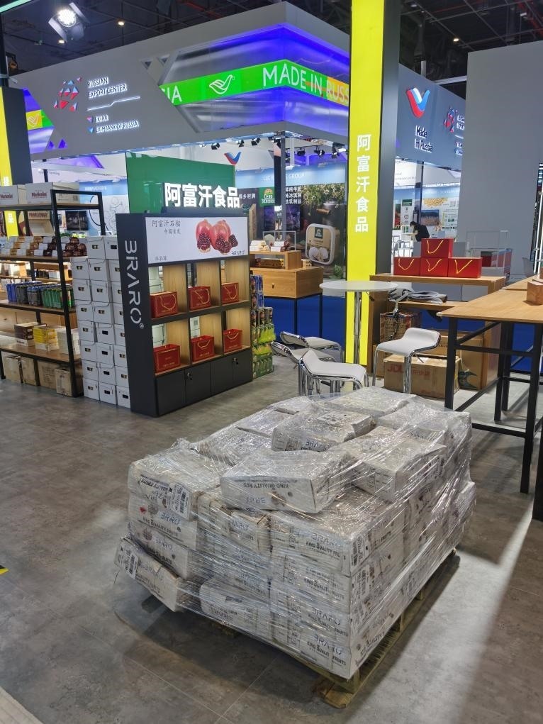 阿里說(shuō),坎大哈石榴能順利亮相第六屆進(jìn)博會(huì),離不開(kāi)綠地集團(tuán)在物流運(yùn)輸以及海關(guān)協(xié)調(diào)上的強(qiáng)大助力。石榴從坎大哈果園被采摘后,需經(jīng)過(guò)1天時(shí)間由卡車運(yùn)輸至阿富汗首都喀布爾,在喀布爾進(jìn)行包裝、裝箱后空運(yùn)至迪拜,再?gòu)牡习蒉D(zhuǎn)機(jī)至北京,最后到達(dá)上海海關(guān)。經(jīng)綠地多方協(xié)調(diào),并借助今年進(jìn)博會(huì)新出臺(tái)的海關(guān)便利政策,終于為阿富汗石榴走通了進(jìn)入第六屆進(jìn)博會(huì)的路。