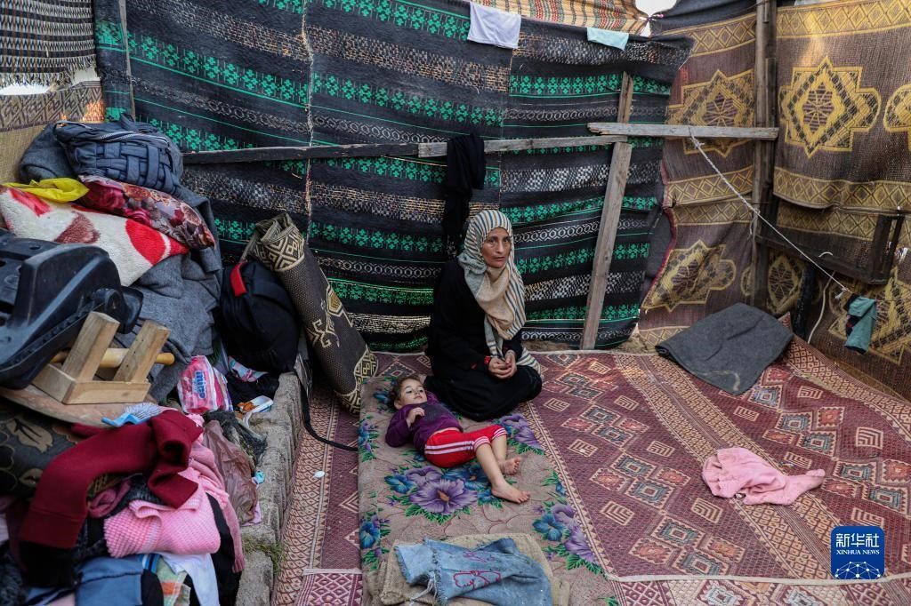 11月6日,人們在加沙地帶南部城市汗尤尼斯的一處臨時(shí)難民營內(nèi)休息。巴勒斯坦加沙地帶衛(wèi)生部門6日發(fā)表聲明說,新一輪巴以沖突爆發(fā)以來,以色列軍隊(duì)襲擊加沙地帶已造成超過1萬人死亡。新華社發(fā)(里澤克·阿卜杜勒賈瓦德攝)