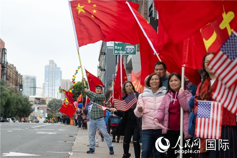 習(xí)近平乘坐的車(chē)隊(duì)離開(kāi)機(jī)場(chǎng)前往下榻飯店途中,許多華僑華人和中國(guó)留學(xué)生代表等候在沿途街道,揮舞中美兩國(guó)國(guó)旗,熱烈歡迎習(xí)近平主席到訪。