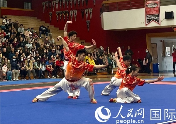 中國(guó)武術(shù)隊(duì)冠軍隊(duì)員在美國(guó)舊金山灣區(qū)交流表演