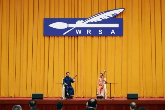 聯(lián)誼會(huì)現(xiàn)場(chǎng),中央民族歌舞團(tuán),浙江小百花越劇院、蘇州市評(píng)彈團(tuán)的藝術(shù)家們?yōu)樵趫?chǎng)嘉賓奉上了民族器樂(lè)合奏《五色風(fēng)情》、越劇《十八相送》、評(píng)彈《姑蘇好風(fēng)光》、歌舞劇《同心共圓中國(guó)夢(mèng)》等文藝節(jié)目,為中外嘉賓帶來(lái)一場(chǎng)別具特色的視聽(tīng)盛宴。