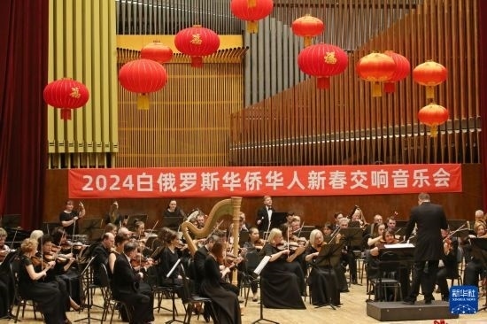 2024“溫暖迎春·共慶中國年”白俄羅斯華僑華人新春交響音樂會2日晚在白俄羅斯國家音樂廳舉辦。音樂會以中國傳統(tǒng)舞龍舞獅表演開場,中白兩國音樂家聯(lián)袂為觀眾奉獻(xiàn)了《春節(jié)序曲》《庫里安協(xié)奏曲》等經(jīng)典曲目。