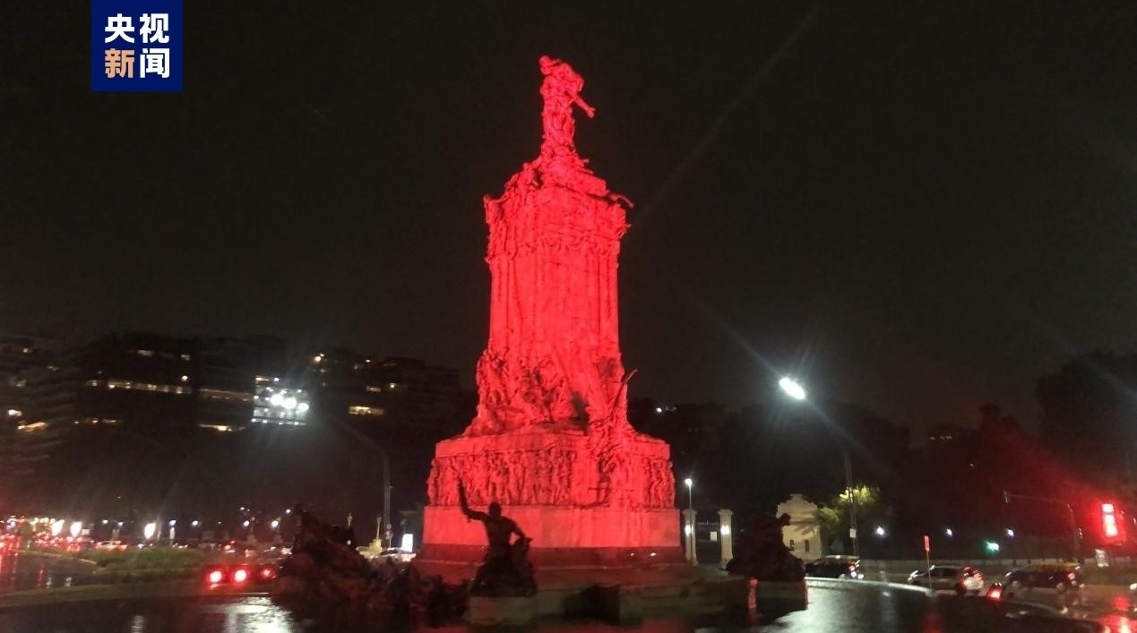 當?shù)貢r間2月9日,為慶祝中國農歷新年,阿根廷首都布宜諾斯艾利斯8處地標性建筑同時點亮“中國紅”,吸引眾多當?shù)孛癖婑v足關注。