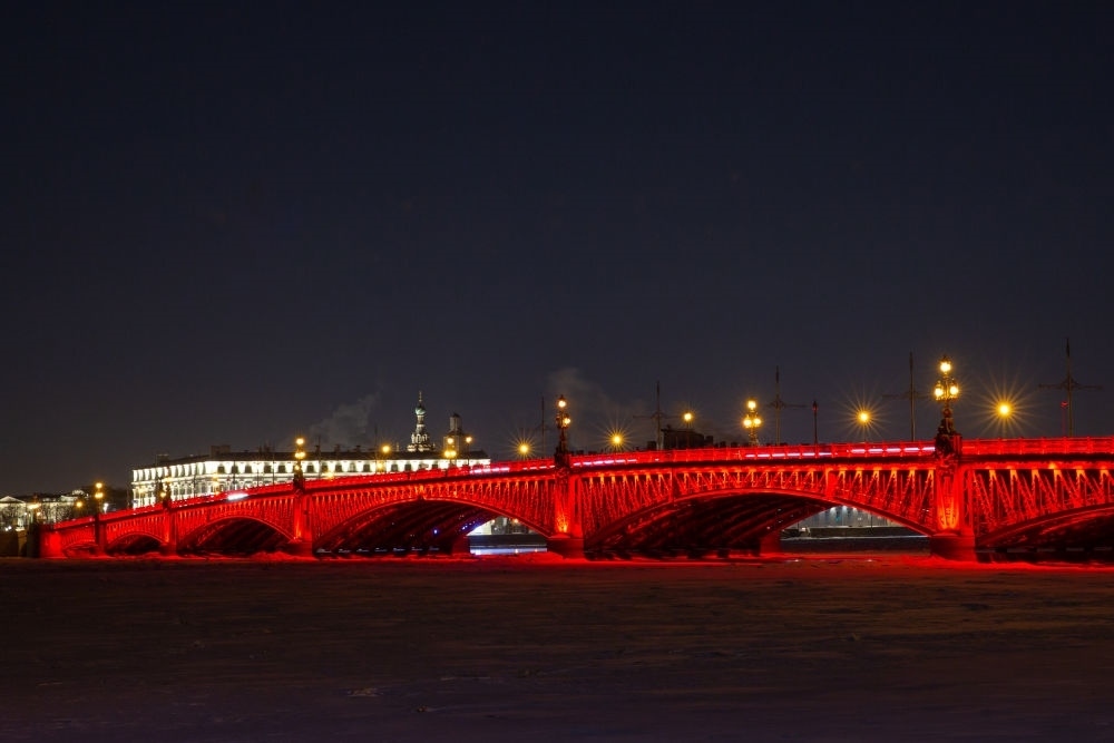 2月9日,俄羅斯圣彼得堡市中心的圣三一橋亮起“中國紅”,慶祝中國龍年春節(jié)。新華社發(fā)(莫京娜攝)