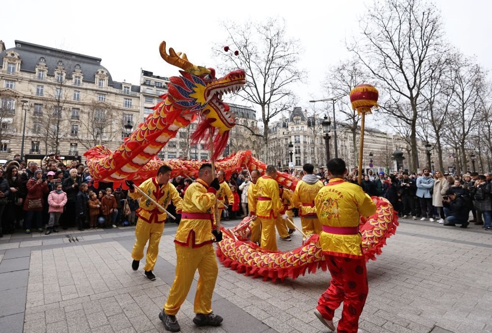 在美國紐約,中國龍形文物巨幅海報亮相時報廣場,向全球人民獻(xiàn)上新春祝福。在新西蘭,總理拉克森在奧克蘭參加“新春花市同樂日”活動,與當(dāng)?shù)厝A人共迎新春。在毛里求斯首都路易港,該國副總理胡斯努與眾人敲響鑼鼓,共同啟動“歡樂春節(jié)”花車巡游。在法國巴黎香榭麗舍大街,長長的舞龍在龍珠引導(dǎo)下上下翻飛,博得陣陣喝彩。游客讓-巴蒂斯特說,世界各地都在慶祝春節(jié),因為春節(jié)帶來的快樂能“感染所有人”。