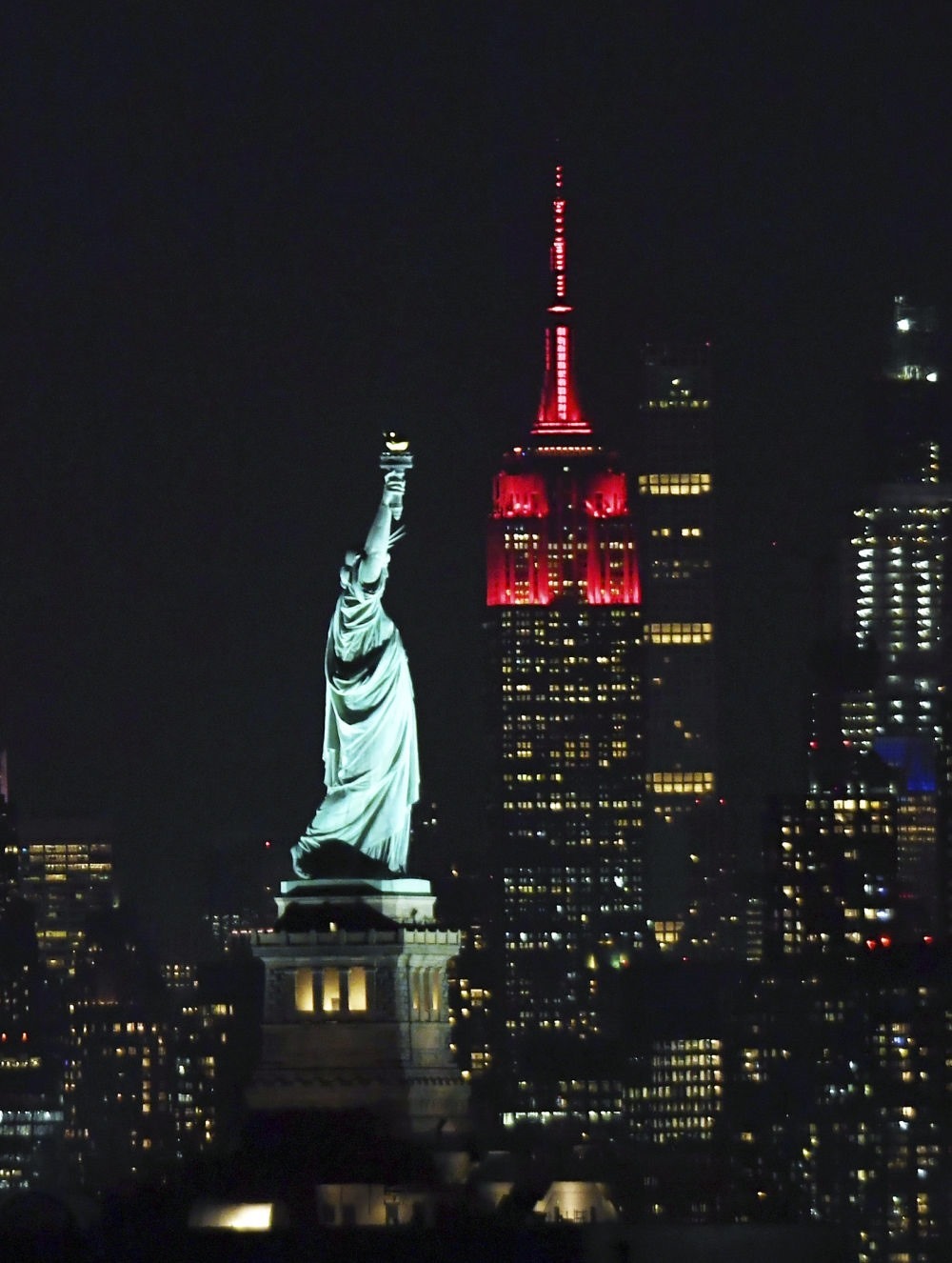 2月8日晚,美國紐約帝國大廈亮起中國春節(jié)主題燈光。新華社記者 李睿 攝