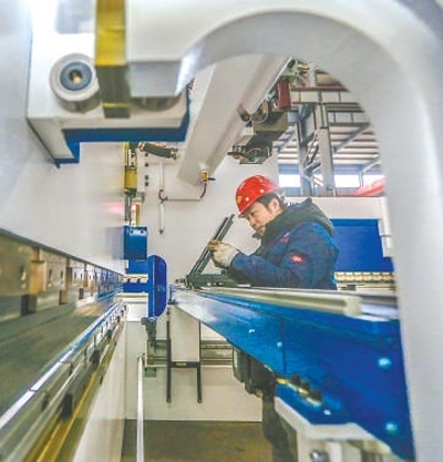 安徽馬鞍山市博望區(qū)亞威機(jī)床制造有限公司技術(shù)人員趕制出口國外的智能數(shù)控機(jī)床。