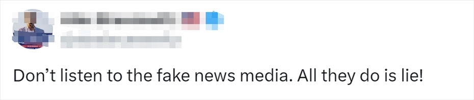 針對(duì)報(bào)道了特朗普這一言論的美國(guó)媒體,有網(wǎng)民留言:“不要聽那些虛假新聞媒體說(shuō)的,他們說(shuō)的都是謊言?!?/p>