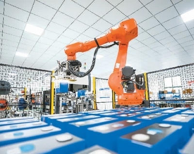 在江西省撫州市南豐縣,智能化生產(chǎn)車間正在裝配儲能電池。謝 東攝(人民視覺)