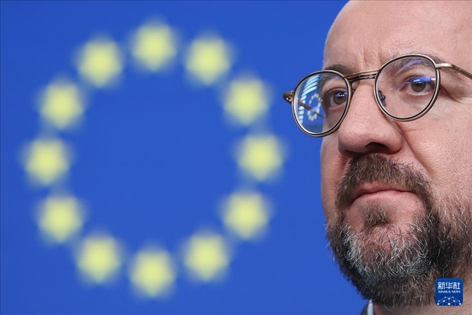 3月21日,在比利時(shí)布魯塞爾,歐洲理事會(huì)主席米歇爾在歐盟峰會(huì)期間出席新聞發(fā)布會(huì)。新華社記者 趙丁喆 攝