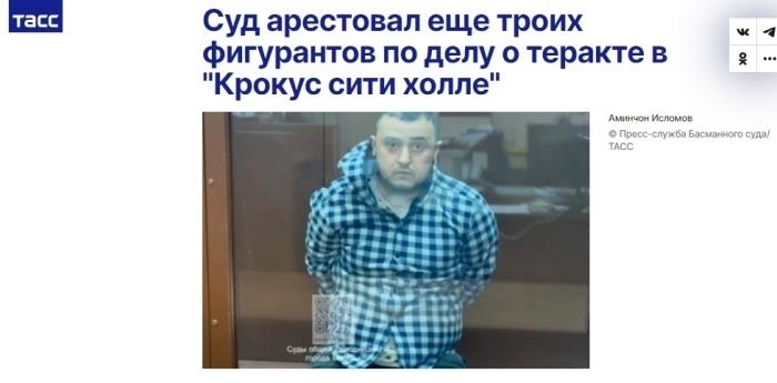 據(jù)塔斯社報道,當(dāng)?shù)貢r間25日,莫斯科巴斯曼區(qū)法院已批準(zhǔn)對這3名恐襲事件涉案人員羈押候?qū)?,?月22日。